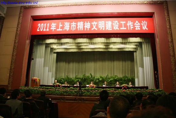 411日下午,在上海展览中心友谊会堂举行2011年上海市精神文明建设工作会议。我校被光荣地评为2009-2010年上海市文明单位,党委书记赵佩琪参加了会议,并作为教委72所高校的唯一代表上台领取上海市文明单位奖牌,这是学校光荣和骄傲。学校的精神文明表彰大会即将召开,将对精神文明建设做全面总结和表彰。