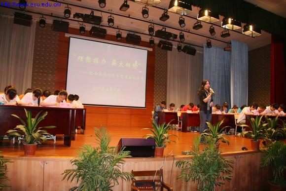 为纪念中国共产党成立90 周年,进一步引导广大学生、入党积极分子深入学习党的历史,加深对党的理想信念的认识和理解,6月8日晚,学校党校组织学生入党积极分子于报告厅开展了“理想接力 薪火相传”纪念建党90周年党史知识竞赛活动。学校党委书记赵佩琪、副校长程龙根出席了本次活动,党校学员和入党积极分子400余人观看了本次比赛。