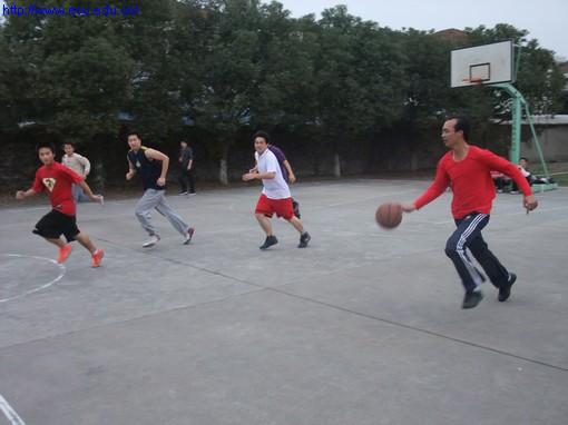 比赛由校团委何瞾老师担当裁判,赛事刚开始,覃家宁老师巧妙的运球,精准的投篮,使得教师队先发制人,以4:0领先。学生队随即进行了战术调整,凭借充沛的体力,灵活的脚步,以快打慢,密切配合,分数慢慢赶了上来。整个比赛过程激动人心,扣人心弦。比赛中陈鼎老师机敏的运球、巧妙的过人、灵活的上篮丝毫看不出已是一位年近五十的老师,赢得了在场同学们的佩服。