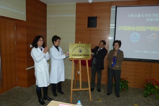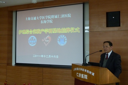 我校护理系今年第二个高校教师产学研践习基地——“上海东海职业技术学院—护理综合实践基地”于12月16日下午在交通大学附属上海仁济医院(东院)挂牌成立。揭牌仪式由我校护理系主任钱关祥主持,上海市教委人事处长陆震、我校校长项家祥、仁济医院领导袁蕙芸在仪式上发言,相关单位的领导和主要人员也出席了仪式。