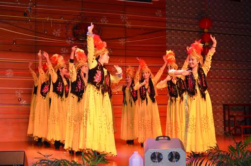 此次晚会别开生面,由我校四名新疆培训班学员主持,其中有三名维吾尔族学员。