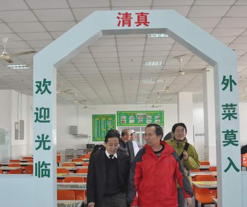 校长项家祥陪同《新疆日报》记者组一行察看清真食堂