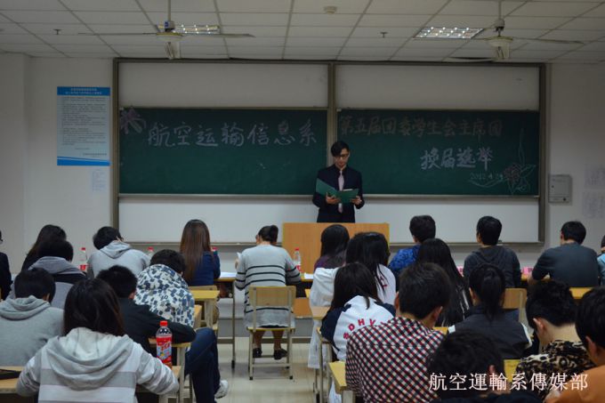 4月24日 航空运输系主席团换届竞选赛第一场顺利举行。选手们做竞选演讲,是否晋级由民意投票决定。台上选手们的深情发言,不拘风格,台下同学们的反应十分热情。通过本次竞选,学生会的同学们体会到了“团结,奉献”的真谛,相信新的主席团接过10届接力棒会更加努力,学生工作会更加丰富多彩。