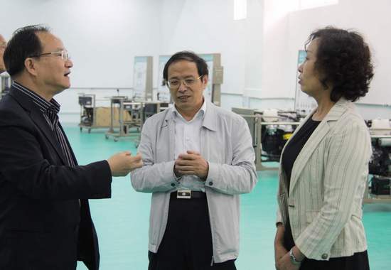 检查组一行在我校领导陪同下视察汽车实训中心