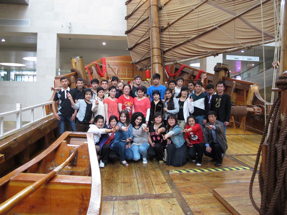 新疆少数民族学生在中国航海博物馆留影