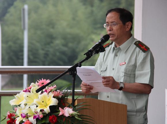 东海军训团团长谢夕东少校讲话,希望同学们严格要求自己,严格遵守部队纪律,做好表率作用;军训团会严格要求新生,确保军训质量,进一步提高新生的军事素质,纪律观念。