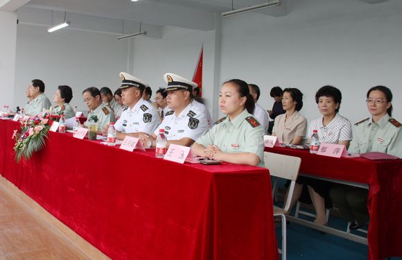 校党政领导、各院系部门的负责人及中国人民解放军91150部队军训团少校就座主席台