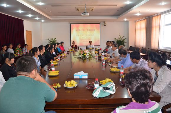 9月30日长假第一天,值中秋节之际,校党、政领导一早来到学校,同新疆培训班领队、辅导员老师一起,与学员们亲切座谈。在“欢度中秋喜迎国庆”新疆培训班学员座谈会上,党委书记赵佩琪向学员们致以佳节的问候,看到学员的精神和学习状态很好,她向学员们介绍了当前学校“三校一建”中心工作,希望学员们把东海当成自己的家,共同把家园建设好。校长项家祥总结了学员们在东海通过一学年的培训体现的“三个大”,进步大、变化大、收获大。并希望学员们面对汉语水平等级考试,面对实习教学任务,对“如何当一名好老师”有深度的思考。中午时分,学校清真食堂备好了道地的手抓饭、羊肉排、红烧鸡腿等特色的可口佳肴,随后,老师们又向每位学员发放了翠文斋清真月饼。