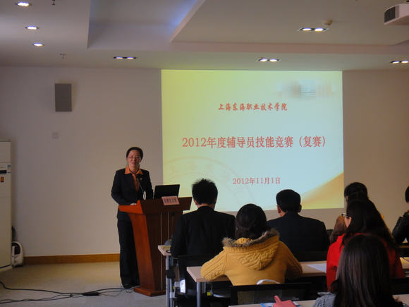 本轮竞赛包括自我介绍与展示和主题班会设计两部分内容,通过初赛入围的9名辅导员参加本次复赛。自我介绍与展示部分要求辅导员对个人情况、特色工作、成功案例进行介绍与展示;主题班会设计部分要求辅导员围绕“学习和宣传十八大”为主题自行设计班会主题,突出针对性、实效性、创造性,撰写主题班会策划书,录制班会实况视频。经过激烈角逐,护理系辅导员戴文文、经管学院辅导员林丽敏、周亚飞和陆苏勤、机电学院辅导员祁志波等5名老师进入决赛。