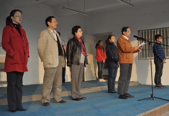 随后,项家祥校长发表了简短讲话。在讲话中项校长提到今年我校被评为上海市示范性民办高校、特色高职高专院校,项校长希望同学们像爱护自己的眼睛一样维护校园稳定,热爱生活,努力学习,将东海校训贯彻到生活中的每一天。