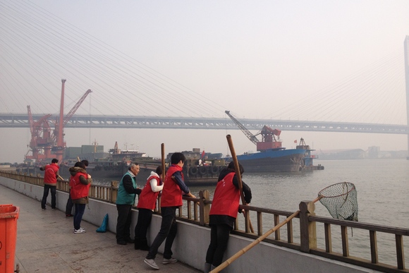 十多名志愿者分成2个组,拿起捞杆、扫帚、垃圾分类筐等工具,清理近百米长的主污染河道垃圾。男生们将捞杆伸向可以达到的最远处,打捞着漂浮物,女生们则帮助他们将洒落地上的垃圾捡拾到垃圾桶中。公园散步的游客对志愿者的行动表示敬意,有人当场加入队伍“帮一把”。经过一个多小时的紧张工作,江面变的干净起来。同学们都表示要在今后的生活中坚持用自己的实际行动学雷锋,发扬雷锋精神。