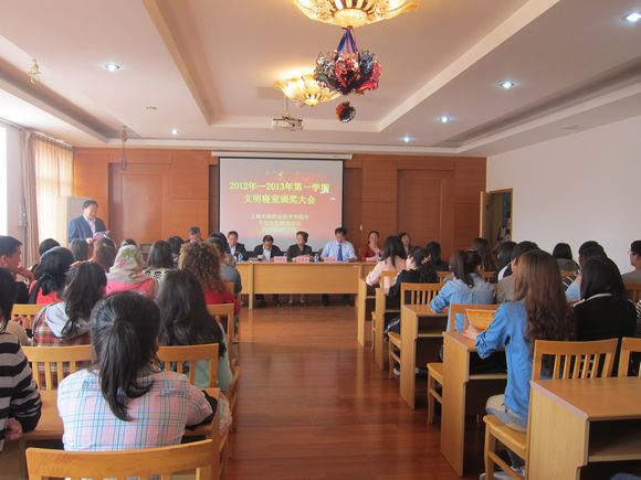 4月17日,校学生宿舍管理委员会召开了2013-2013第一学期文明寝室创建侯丹总结表彰大会,校长、党委书记、院系办主任、辅导员代表、获奖寝室代表、宿管员及各楼楼长共80余人出席了会议。