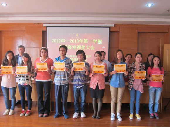 会议由后勤保障部部长许双全老师主持,校宿管委副主任、后保部副部长张雪芬老师首先发言,在充分肯定文明寝室创建活动的同时指出存在的不足。副校长、校宿管委主任程龙根宣读了关于2012-2013学年学习型寝室、文明寝室的表彰决定,号召全体住宿学生向3号楼113室等6间学习型寝室、4号楼414室等19间文明寝室学习,做文明人,创文明寝室。在热烈的掌声中,校领导、宿管委领导分别向获奖寝室代表颁奖,同时获奖的还有29间卫生模范寝室,175间卫生寝室。校领导们还向荣获“我爱校园、我爱宿舍”摄影比赛,一、二等奖获奖者颁奖。
