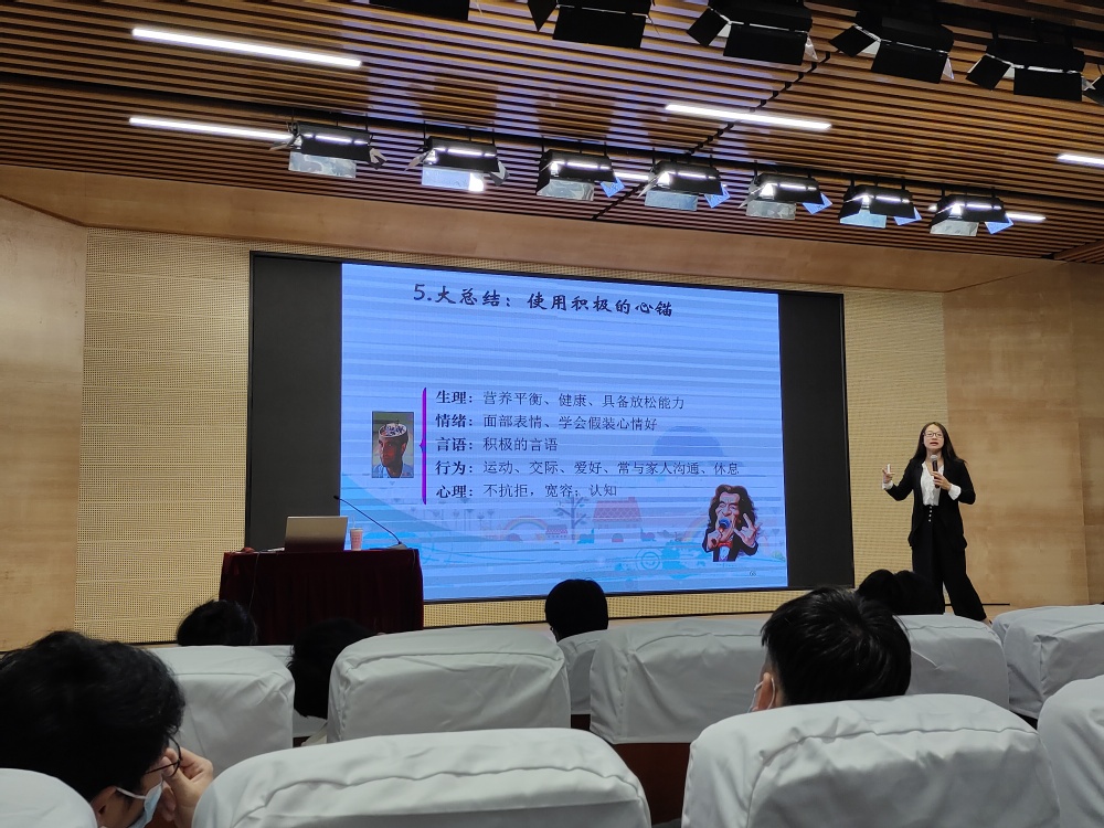 11月18日,上海应用技术大学副教授、硕士生导师施谊应邀为经管学院大一新生作《做幸福的自己—压力与情绪管理》的主题讲座。经管学院145名大一新生在匠兴苑报告厅聆听了讲座,讲座由学工办主任许小梅主持。