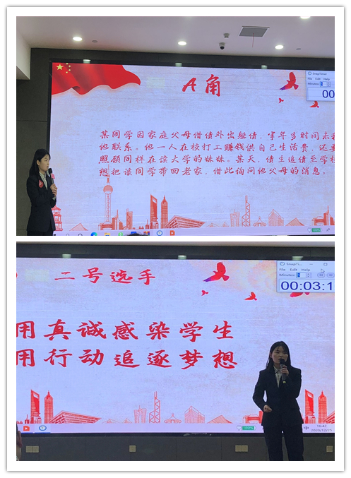 12月25日,上海民办辅导员素质能力大赛复试、决赛在上海建桥学院举行,共有24名来自上海民办高校选手参与,我校航空学院辅导员王思美老师晋级复赛。复赛以案例讨论方式开展,她思路清晰、对答如流、有理有据。最终,她以复赛第二名的成绩晋级决赛。下午决赛分为谈心谈话和理论宣讲两个环节。她驾轻就熟运用谈心谈话技巧,安抚学生情绪,耐心帮助学生解困。她从辅导员工作理念、感悟展开理论宣讲,鼓励学生以信念为指引,以行动为导向,立鸿鹄之志,做时代的奋进者,为实现中华民族的伟大复兴这一共同理想而不懈奋斗。经过10个小时激励角逐,王思美老师获得此次比赛一等奖。