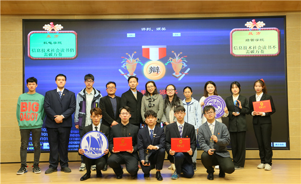 在双方经过简要的自我介绍,扣人心弦的决赛正式开始。场上双方你来我往,唇枪舌战,围绕着“信息技术社会读书仍/不需破万卷”的辩题展开激烈辩论。正方机电学院代表队认为“信息技术社会读书仍需破万卷”,而反方经管学院代表队则坚持“信息技术社会读书不需破万卷”。双方参赛队伍才思敏捷,乘风破浪,并在自由辩论环节将比赛气氛再次推向高潮,现场精彩不停,掌声不断。最终,在一小时激烈比拼后,评委们分别对各队队风及选手表现作点评,并希望各位辩手再接再厉,争取更进一个台阶。