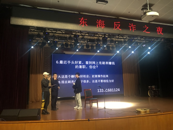 塘湾派出所潘警官和闵行分局反诈中心警官分别以案情再现和专业分析的视角,为东海学子上了一堂生动的“防电信网络诈骗”宣传教育课。两位警官详细介绍了常见网络诈骗类型、手段和诈骗过程,通过分析上海地区电信诈骗受害者的文化程度、性别、被骗人数和金额,以此做到宣传与警示,提高大家的防范意识。最后,引导大家通过关注“96110”反电信网络诈骗中心电话、国家反诈中心APP,做到有效过滤骚扰电话,不转账,多沟通,守护好钱袋子。
