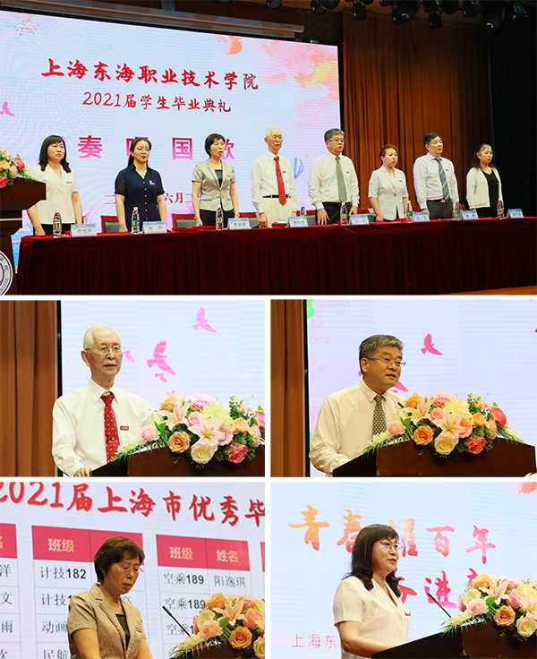 党委书记曹蓉蓉宣读上海市优秀毕业生、校优秀毕业生表彰决定,校领导分别为优秀毕业生代表颁发荣誉证书,同时为各学院毕业生代表颁发毕业证书。