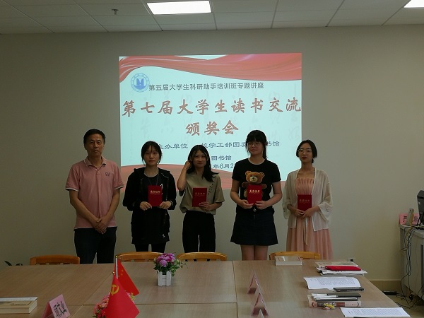 校党政办主任顾文业、学工部副部长王莉娜、团委书记任洁为获奖学生颁奖。一等奖代表经管学院史思、传媒学院徐嘉怡、杨禹来、教育学院薛婧怡等四位学术在大会上交流了自己读书心得。