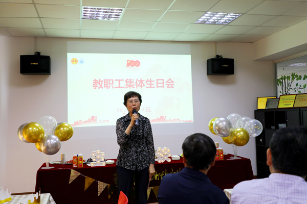 集体生日已经是东海的传统活动,校工会积极组织、精心筹划,只为让寿星们能够真切感受到东海大家庭的温暖,学校领导也非常重视,党政班子每年坚持亲临现场道贺,以情感人、以情留人,用浓浓真情感怀人心。党委书记曹蓉蓉在致辞中表示,过生日不仅意味着人又年长了一岁,更意味着每个人为东海的发展又贡献了一年的力量。东海28年来能够兴旺发展,并对未来充满信心,靠的就是这一位位多年来与学校同舟共济、砥砺前行的可爱教职工,因此学校领导对此始终抱持着感恩的心。同时,曹书记也希望寿星们同样感恩:感恩东海、感恩家庭、感恩党和国家,要用实际行动向党的百年华诞献礼。