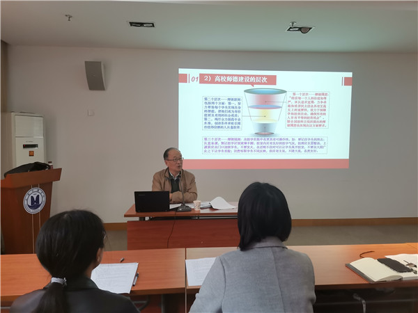 11月4日,校关工委成员喻家琪应邀为教师带来《注重师德,做一名合格的教师》主题讲座。喻家琪分别从“高校师德建设的特征层次”“高校师德建设的启示”和“高校师德‘四有’思维方式”等方面进行讲解。他结合自身高校工作经历,就教师与学生的关系、教师职业道德规范建设、教师师德规范结构层次进行了详细分析。他指出“德高”“身正”“止于至善”是师德理想的崇高境界。他勉励新教师们要把师德师风建设作为教师素质的核心内容,不断营造教书育人、崇尚师德的良好氛围。同时要把“德为人先、学为人师、行为世范”作为终身学习的目标。