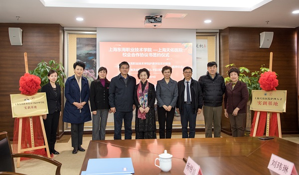 11月9日,上海东海职业技术学院——上海天佑医院校企合作签约仪式暨“上海东海职业技术学院护理学院实训基地”“上海天佑医院护理人才实训基地”揭牌仪式在我校南807会议室举行。上海蓝生脑科医院投资股份有限公司副总裁叶文琴,上海天佑医院院长蔡剑飞、执行院长王强,上海蓝生脑科医院投资股份有限公司医疗管理部培训主任唐秀花,上海天佑医院副院长兼护理部主任刘玮琳、护理部主任助理张颖,东海学院校长王刚、党委书记曹蓉蓉、副校长卓丽环、护理学院院长桑未心等参加此次签约暨揭牌仪式。