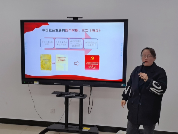 龙燕为全体学生工作者深刻解读了《中共中央关于党的百年奋斗重大成就和历史经验的决议》(以下简称《决议》)。她从党的百年历史中的三次决议入手,深入浅出讲述何为“决议”,“决议”为何的内容,解读了党的百年奋斗历程和辉煌成就;解读了《决议》是新时代中国共产党人牢记初心使命、坚持和发展中国特色社会主义的政治宣言,是以史为鉴、开创未来、实现中华民族伟大复兴的行动指南。她表示,学生工作者应当实事求是地看待中国“昨天”“今天”“明天”,做到勿忘昨天的苦难与辉煌,无愧今天的使命与担当,无惧明天的中国梦想!
