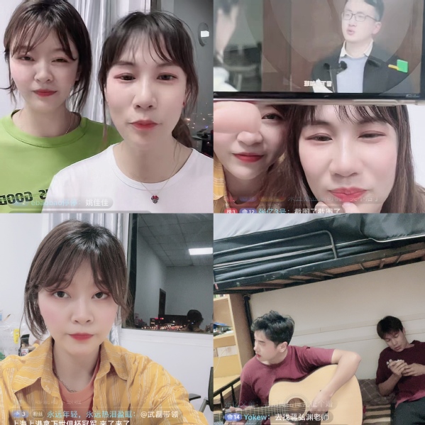 在封控期间,3月12日—15日每天晚上,经管学院姚教师佳佳、刘舒叶、朱丹萍、金锟利用电子商务专业设备资源,在“经管娃”抖音号上发起线上直播,学生们就吃饭、洗澡、上课等比较关心的问题提问,老师们一一解答。与此同时,学生们点歌,老师们唱歌,每天晚上两三个小时的互动拉近了师生之间的距离,平时老师在学生心中严肃的形象一下子变得亲切了;刘舒叶还给学生们展示了会计专业ERP财务机器人的短片,激起了同学们广泛的兴趣;经管学子还与老师们连线分享封控期间的宿舍学习生活与身体状况,通过唱歌、吉他演奏展示在丰富的宿舍文娱生活,积极连线发挥才艺的学生还收到了老师们手写的留言便签和可乐等小礼物。