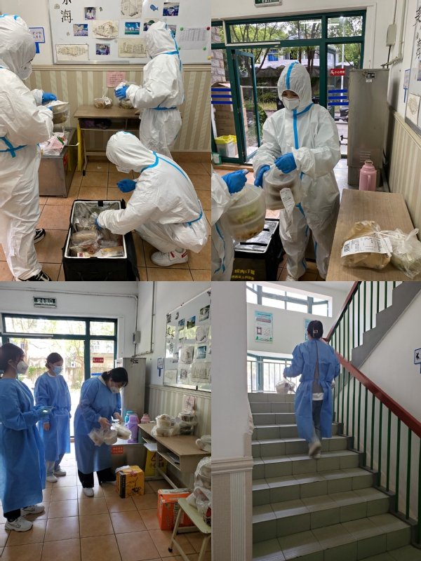 当下,学生们“足不出户”,活动范围缩小至寝室及卫生间。为共同抗疫,学生宿舍楼驻楼辅导员、宿管员、楼内学生志愿者共同组成宿舍楼服务保障小组。由辅导员负责召集学生组成志愿者服务队伍,每天将一日三餐送至每一个寝室,确保每一位学生都可以吃到饭。