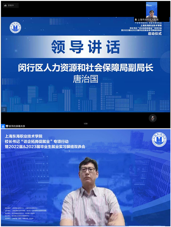 为深入贯彻落实党中央、国务院关于促进高校毕业就业工作的决策部署,积极响应教育部及上海市教委关于高校书记校长访企拓岗促就业专项行动的要求,加强校企供需对接,深化校企合作,全面推进产教融合,切实提高应用技能型人才的培养质量,5月28日下午,上海东海职业技术学院校长书记访企拓岗促就业专项行动启动仪式暨2022届&2023届毕业生就业实习网络双选会在腾讯直播间圆满落幕。