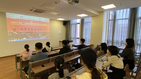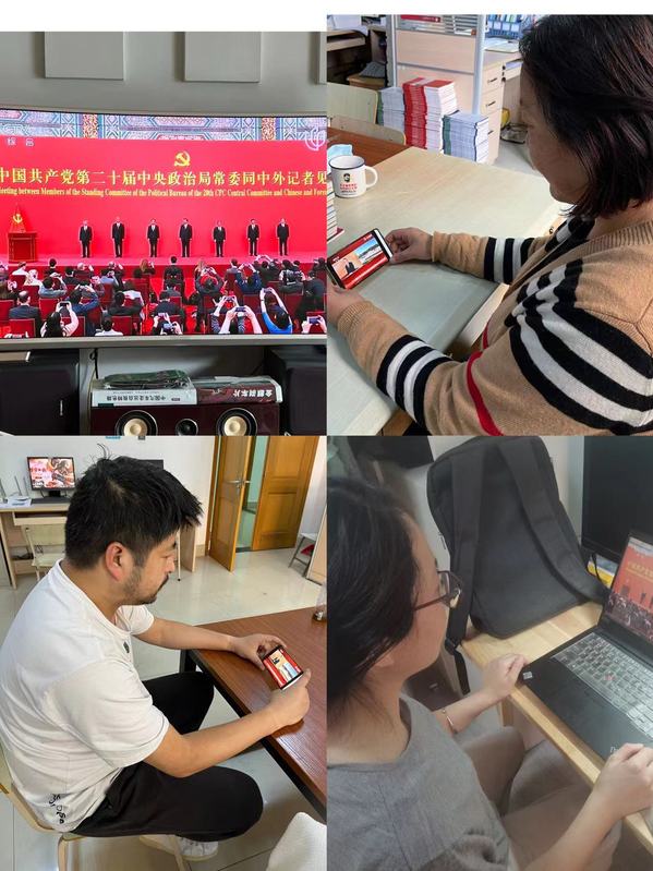 时许,在学校党委组织下,全体师生党员在线上准时观看了“中国共产党第二十届中央政治局常委同中外记者见面会”。