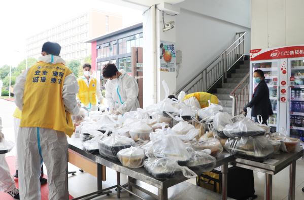 学校后勤服务中心采购了新鲜的肉类和蔬菜,精心烹饪,全力保障师生封控期间饮食,为更好地学习和生活提供支持。