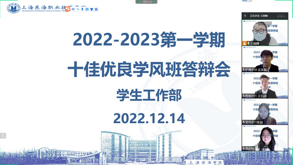 为深入贯彻党的二十大精神,坚持立德树人的根本任务,培育和践行社会主义核心价值观。为展现当代大学生奋发向上的精神风貌,树立先进班级学习典型,展示各班在学风建设中取得的成就,总结班级学习成果,提供互相学习台。12月14日学生工作部开展“十佳优良学风班”答辩会。经学院评选推荐、学校复核,共有12个班级进入答辩环节。