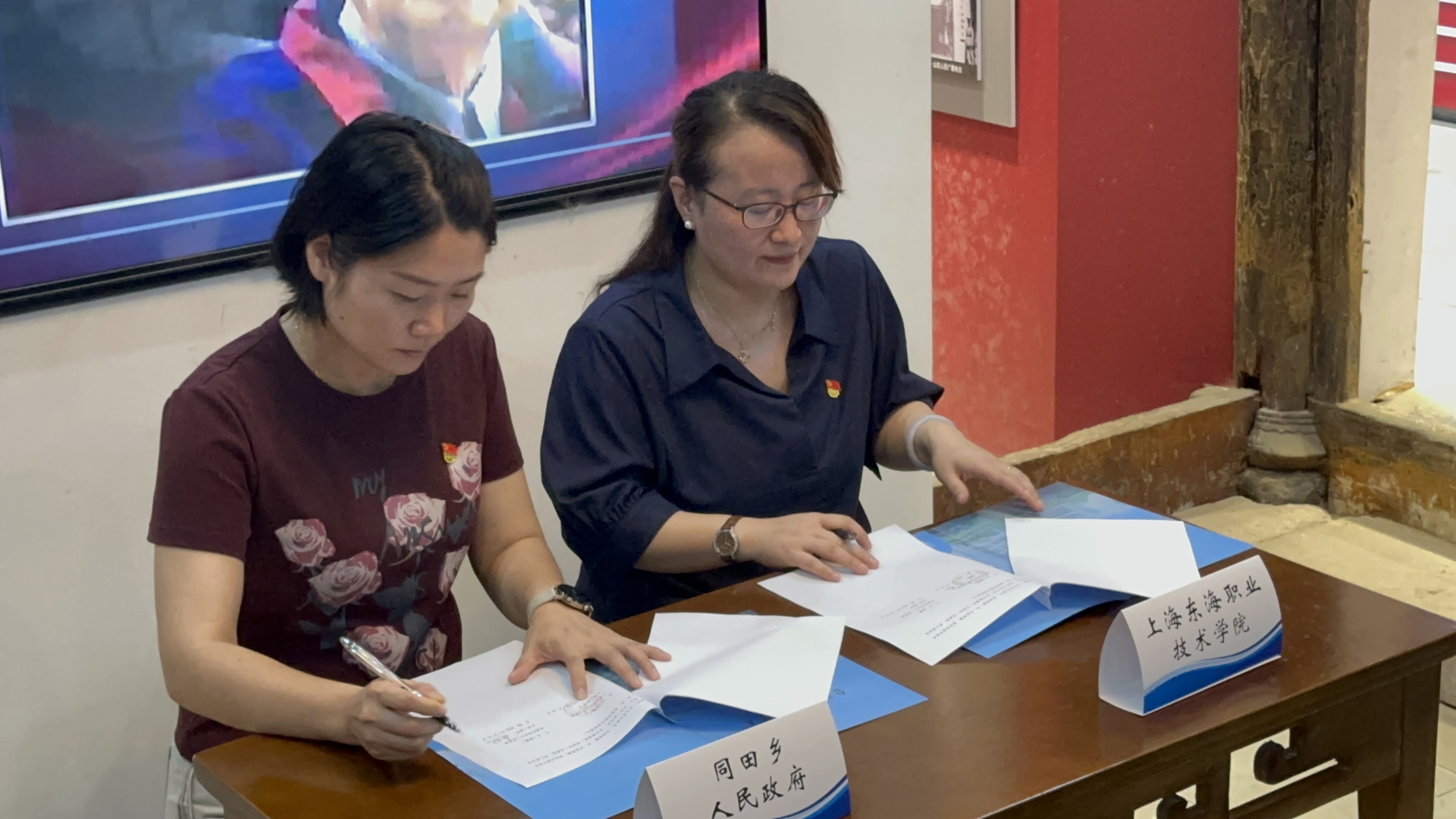 7月10日上午,上海东海职业技术学院师生代表一行十余人,怀揣对革命前辈的崇高敬意,跨越750公里,抵达江西省丰城市,与田乡夏征农生平事迹馆、同田乡人民政府共同举行校馆共建“大思政课”实践研学基地签约揭牌仪式,并开展红色文化研学活动。丰城市同田乡乡长喻佳美、上海东海职业技术学院马克思主义学院院长龙燕出席仪式并代表双方签约揭牌。丰城市委党校青干班学员、东海学院师生代表共同参与活动。