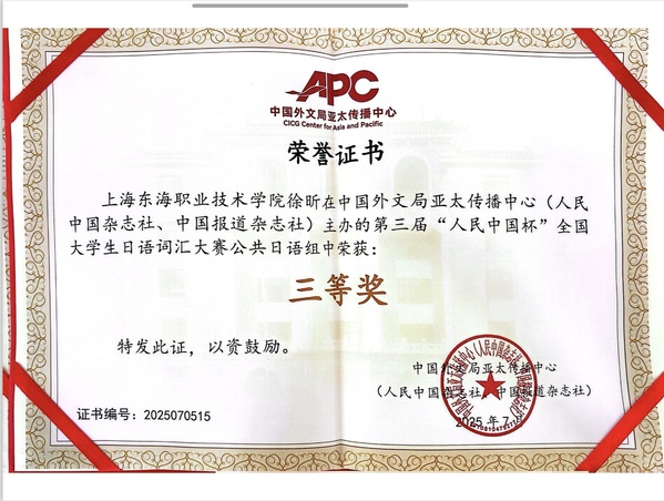 为备战此次比赛,语言教学中心日语教研室的教师们积极动员并组织学生报名。备赛期间,同学们充分利用课余时间刻苦学习、认真准备,不仅系统梳理和记忆了大量日语词汇,还广泛涉猎日本文化、文学及历史等相关知识,拓宽了文化视野,提升了语言综合应用能力。在赛场上,他们沉着冷静、灵活应对,展现出扎实的词汇基础和优秀的答题能力,彰显了东海学子的卓越风采。