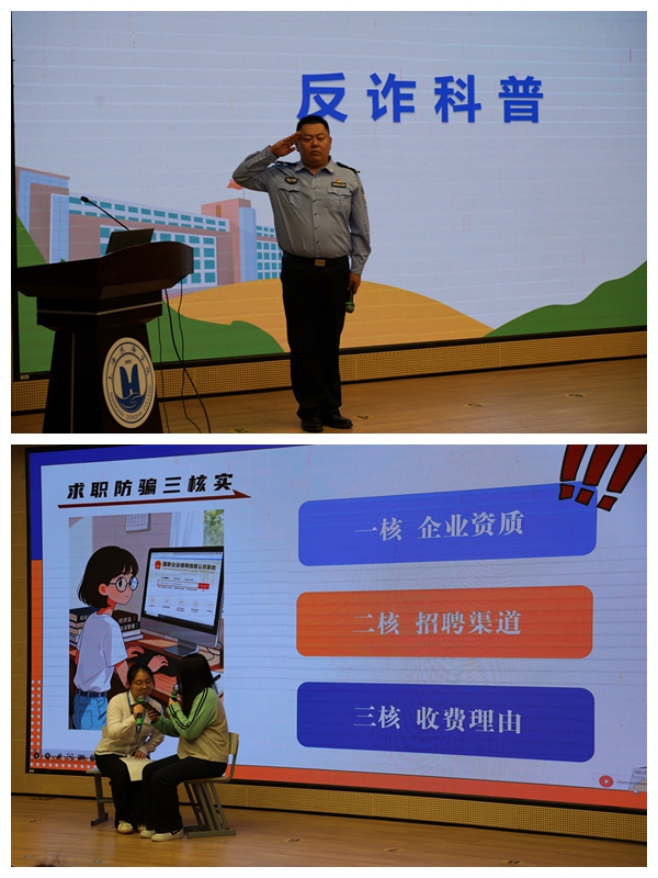 “校园安全是师生安心学习、工作的基础,而反诈是校园安全的重要一环。” 副校长郁萍表示,“通过‘案例+科普+趣味演绎’的形式,打破了传统反诈宣传的单一模式,让师生既能直观感受到诈骗危害,又能轻松掌握防范技巧,参与度和获得感都很高。11名反诈联络员的聘任,更是为校园反诈搭建了‘常态化阵地’,后续我们会持续依托这一队伍,让反诈知识走进课堂、融入日常。”