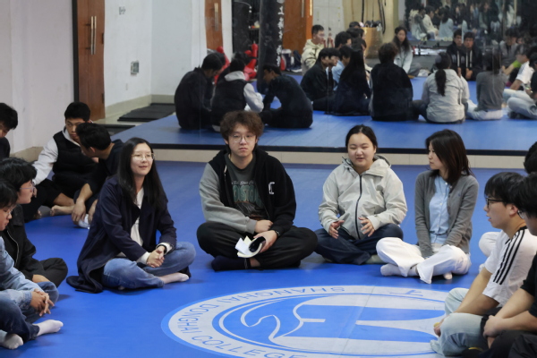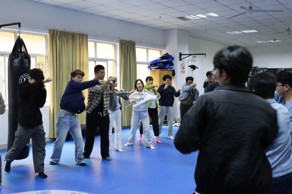 随后,全体成员参加了“动静相融·心身共愈”主题团体辅导活动,活动创新性地融合正念冥想与散打基础训练,以“动中修静”的理念引导学生平衡身心冲突,不仅提升了疗愈的趣味性,还针对现代学生常见的压力源提供实操解决方案,通过身体律动触发情感宣泄,再以静观技术整合体验,形成可持续的自我调适能力。现场,师生们积极投入,踊跃交流分享参与过程中的身心感受,普遍反馈体验独特新颖,收获颇丰,对缓解压力、提升情绪管理能力具有积极作用。