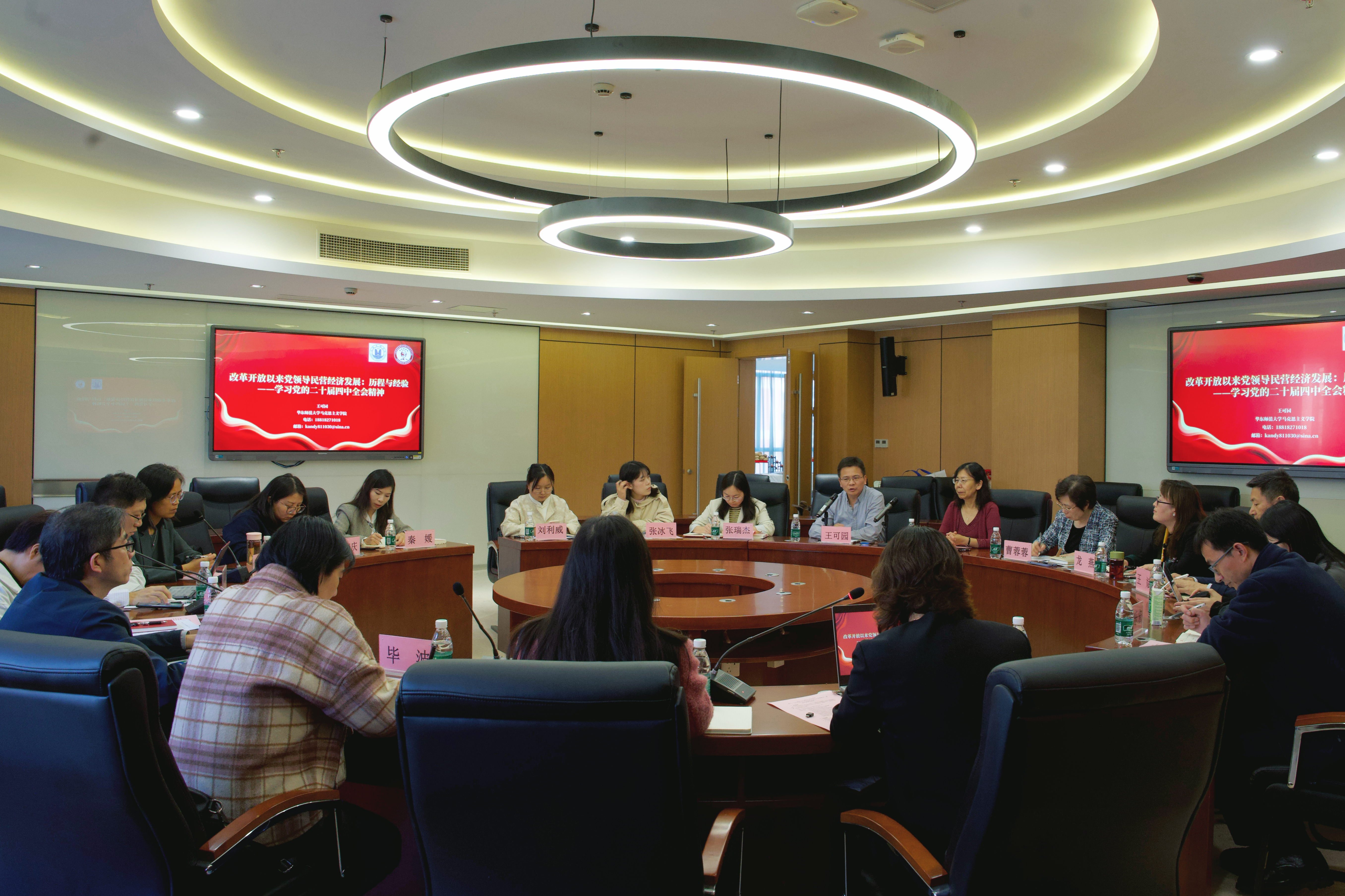 在主题发言环节,王可园以“改革开放以来党领导民营经济发展:历程与经验——学习党的二十届四中全会精神”为题,系统阐释了坚持和发展公有制经济、鼓励支持引导非公有制经济的理论内涵与实践意义。他提出,思政课教师应引导学生从历史纵深和现实维度理解“两个毫不动摇”的战略价值,深化对党的创新理论的时代性与科学性的认识。