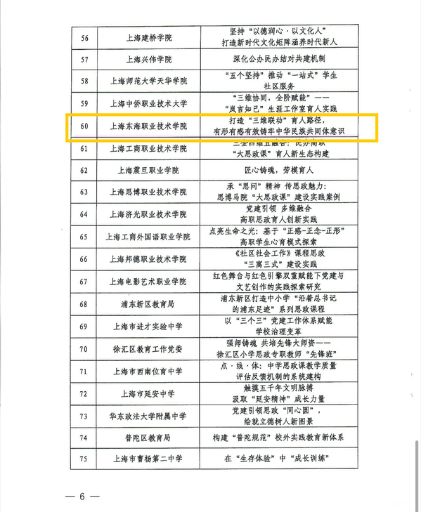 日前,上海市教卫工作党委、市教委公布《2025年上海市立德树人机制综合改革试点典型工作案例》入选名单,我校《打造“三维联动”育人路径,有形有感有效铸牢中华民族共同体意识》案例成功入选。