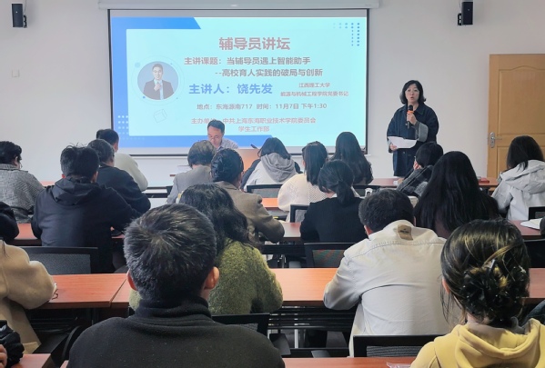 为探寻人工智能时代学生工作的创新路径,11月7日,我校特邀国家高级职业指导师、全国学校共青团研究中心特聘副研究员、全国高校辅导员年度人物提名奖获得者、江西理工大学饶先发副教授作“AI赋能思政:当辅导员遇上智能助手——高校育人实践的破局与创新”主题讲座,此次讲座面向二级学院党总支书记、党支部书记以及全体辅导员。