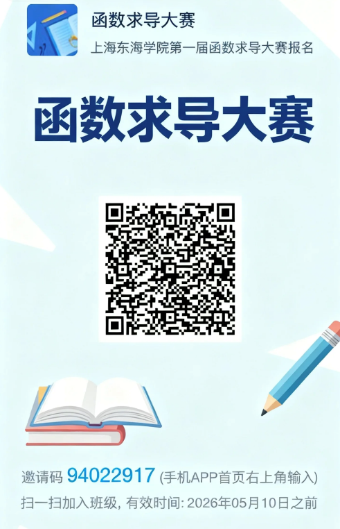 为了弘扬“工匠精神”,培养“创新意识”,营造“技能成才”良好氛围,同时兼顾“比赛普适性”“技能大赛全员化”的要求,特举办上海东海职业技术学院第一届“函数求导大赛”。具体要达成以下两个目标: