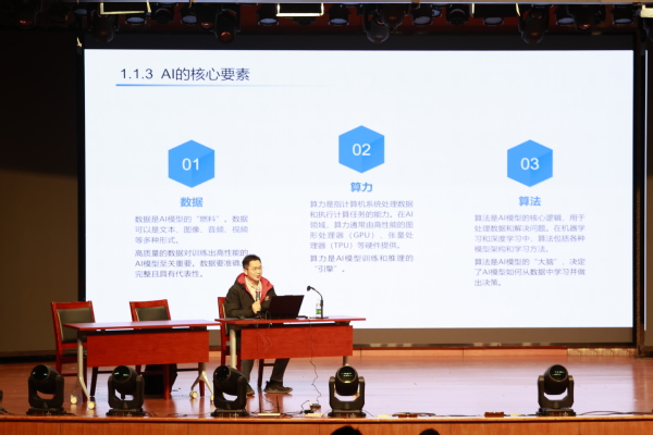 讲座内容从理论到实践,为师生们提供了应用指南。李忠唐副教授系统阐释了人工智能的核心概念,重点剖析了当前热门的AIGC(生成式人工智能)的底层逻辑,指出生成式模型与扩散式模型是其核心技术双引擎。讲座现场,他通过AI自动化编程实例,展示了如何运用提示词工程高效生成Python代码框架。AIGC技术的功能类别及典型应用场景丰富多样。例如,在文本创作方面可用于广告文案、新闻写作,能有效提升内容生成效率;图像创作可进行风格迁移、老照片修复,降低了设计技术门槛;数据分析能进行Excel处理、可视化图表生成,简化了数据解读流程。电商商品图制作、智能客服对话等都是AIGC技术的典型应用案例。