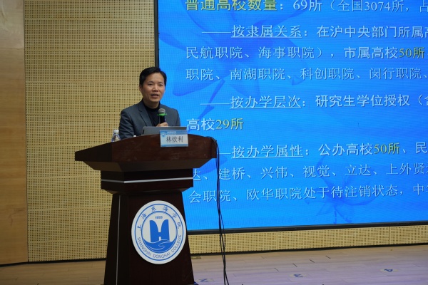在专题报告环节,上海交通大学上海高级金融学院张湧、市委教育办秘书处及市教委综改办主任林炊利、上海东海职业技术学院校长贺瑛先后作专题报告。