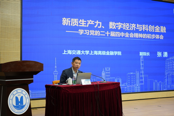 张湧以《新质生产力、数字经济与科创金融》为题,分享了学习党的二十届四中全会精神的体会。他结合丰富案例与翔实数据,系统阐释了新质生产力、数字经济和科创金融等领域在国家发展战略、上海五个中心建设的重大意义,强调数字贸易与数字经济在促进消费、激发增长中的关键作用,展望了未来数字经济、人工智能对职业教育技术人才培养的规格和岗位适配性的新要求。