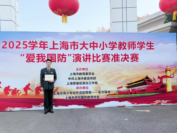 12月7日,由上海市教育委员会、中共上海市委宣传部、上海警备区政治工作局联合主办的2025年上海市大学生“爱我国防”演讲比赛决赛圆满落幕。我校优秀退役学生刘浩从众多参赛选手中脱颖而出,荣获一等奖,为学校国防教育工作再添荣誉。