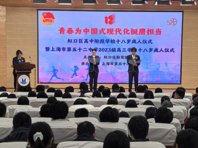 12月9日,上海市第五十二中学2026届毕业班师生来我校参观交流并举办18岁成人仪式。招生就业处、各学院相关人员参加交流会。招就处行政宣传科科长孟倩主持会议。