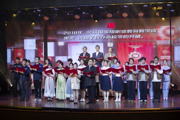 话剧尾声将情感推向高潮:“东海学院的32年,是一部在改革中突围、在创新中重生的奋斗史。今天,我们再度立于时代潮头,这不是跟跑,而是领跑;非做选择题,而是必答题——以高质量发展书写中国职业教育现代化的东海篇章。”“我们以职教之名,让平凡成就非凡,让每位学子都成为出色的时代答卷人!”铿锵之言,承前启后,令人动容。