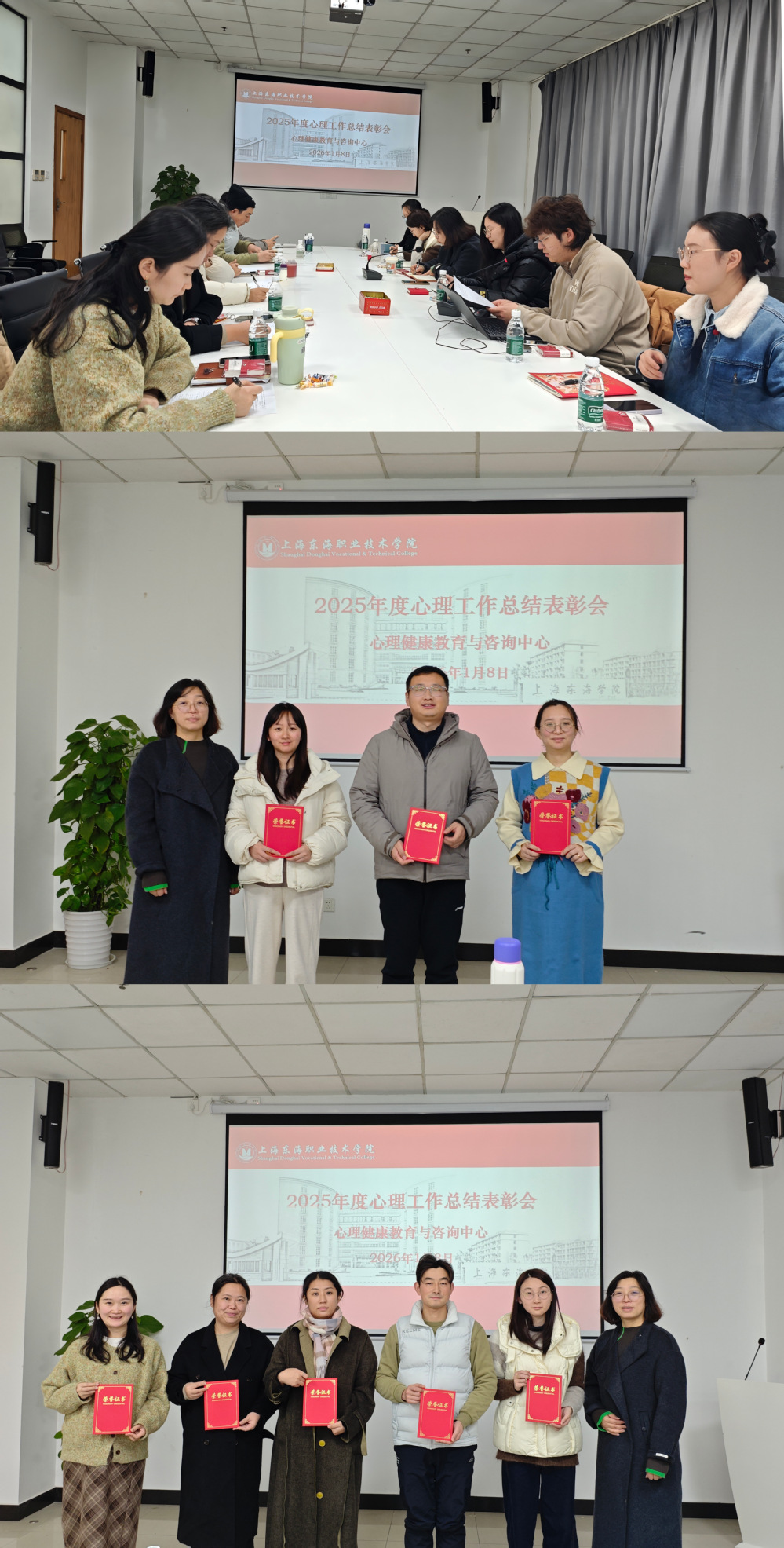 我校心理健康教育与咨询中心于1月8日召开2025年度工作总结表彰会。心理中心主任岳宝华、两位专职心理教师、各学院兼职心理辅导员共同参会。会议围绕总结回顾、交流座谈与未来展望三大议程展开,现场气氛热烈,交流深入。