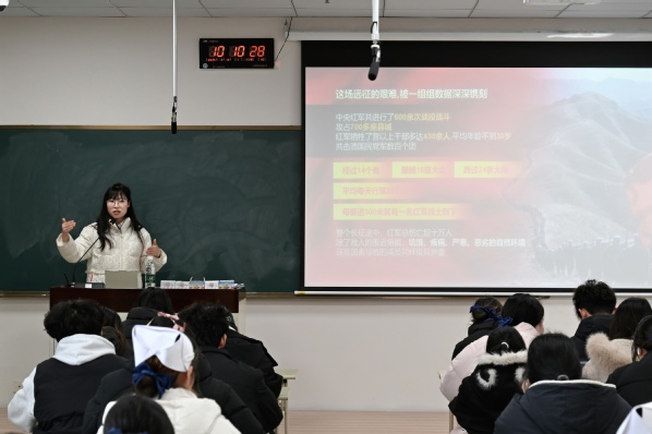 “长征是人类历史上的奇迹,更是中国共产党人精神谱系中巍然屹立的丰碑。”学校党委书记曹蓉蓉在讲课中表示。她指出,“党的建设”是伟大长征精神得以落地生根的关键“组织密码”,在风雨如磐的长征路上,一个个党支部就是茫茫暗夜中的星火,将崇高的信仰转化为具体的行动。她强调,伟大精神的价值在于跨越时空、照亮前路,长征精神已熔铸进中国共产党人的血脉,在共和国发展的每一个阶段都转化为磅礴的实践力量。