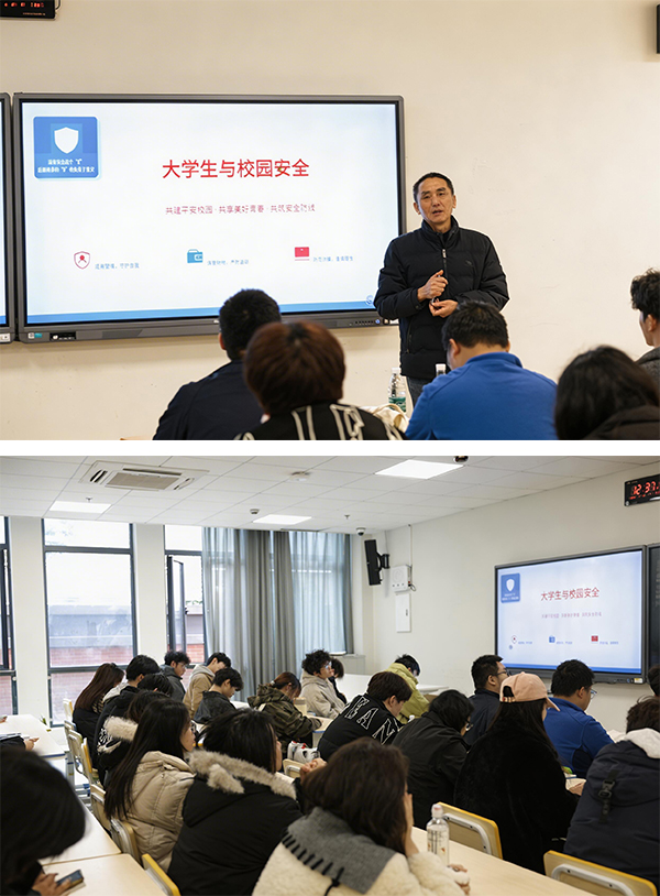 讲座中,蒋久泉以安全是大学生活的“1”,其余皆是后续的“0”为核心,深刻强调了校园安全的基础性与重要性。针对校园日常安全的核心维度,他从防火、防盗、防诈骗及杜绝违纪四个方面展开讲解,结合真实案例点明各类安全隐患的高发场景与潜在危害,同时给出针对性的防范技巧、应急处置方法与行为规范要求。